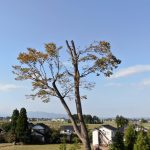 樹齢100年を越える樹高35mの大きなケヤキ。頭が大きくなり危ないとのことで枝おろし。