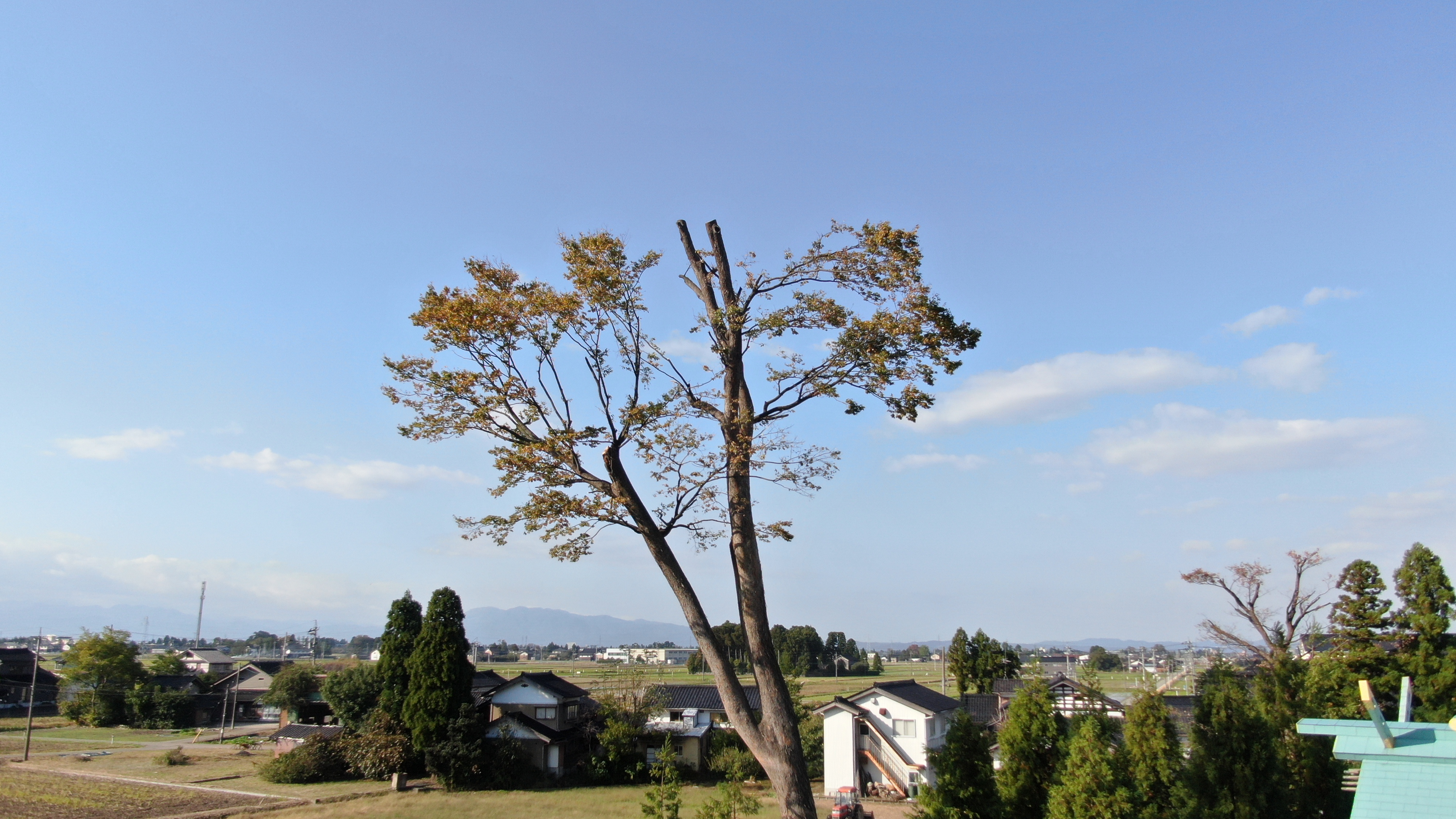 砺波市O地区神社のケヤキの枝おろしを行いました。