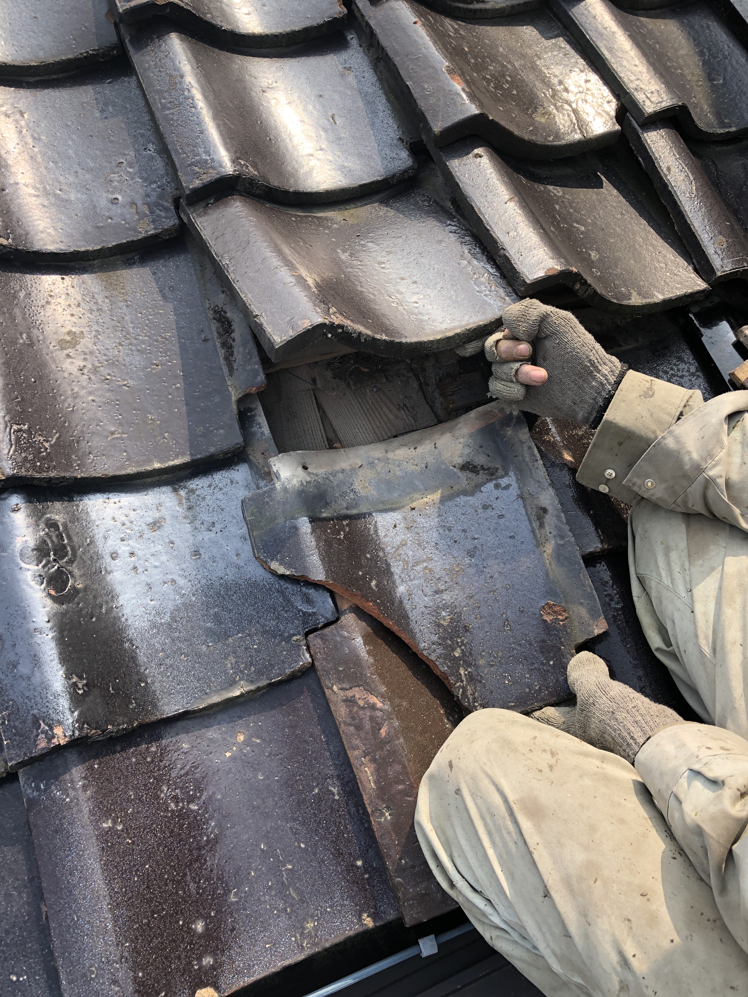修繕時、屋根に登ると他2箇所も瓦破損箇所を発見。合わせて修繕完了!