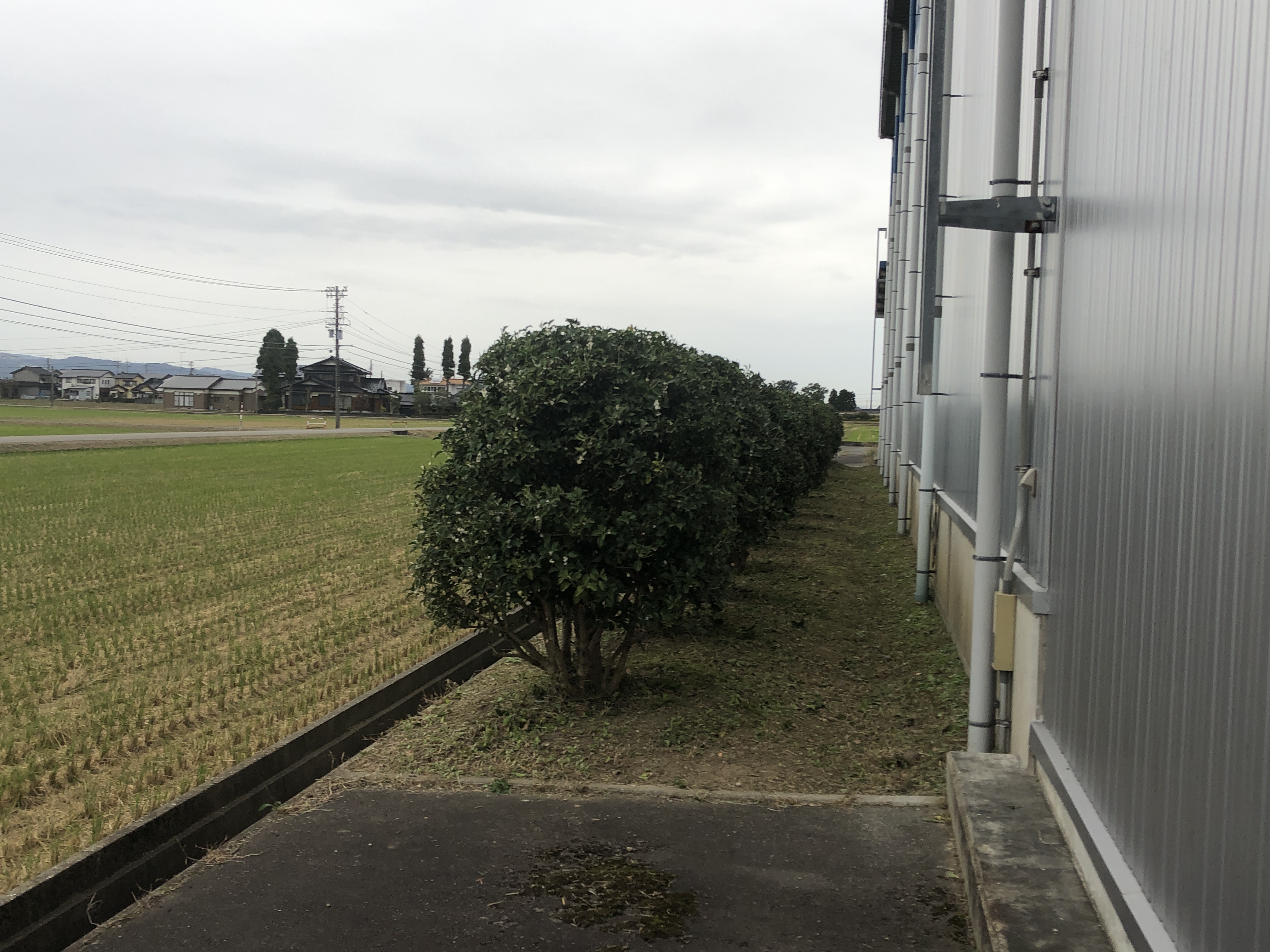 砺波市の倉庫周りの植樹を剪定させていただきました。