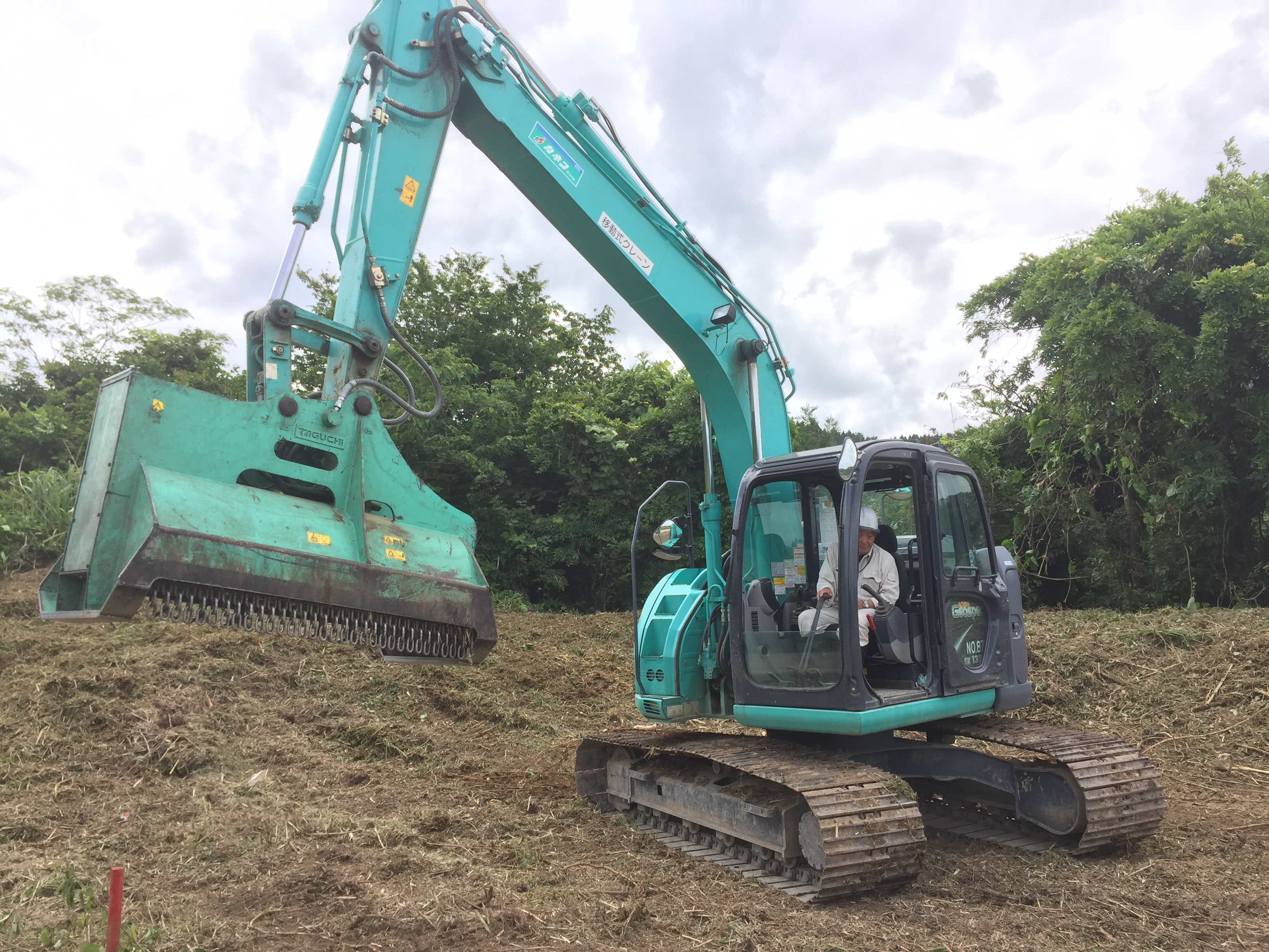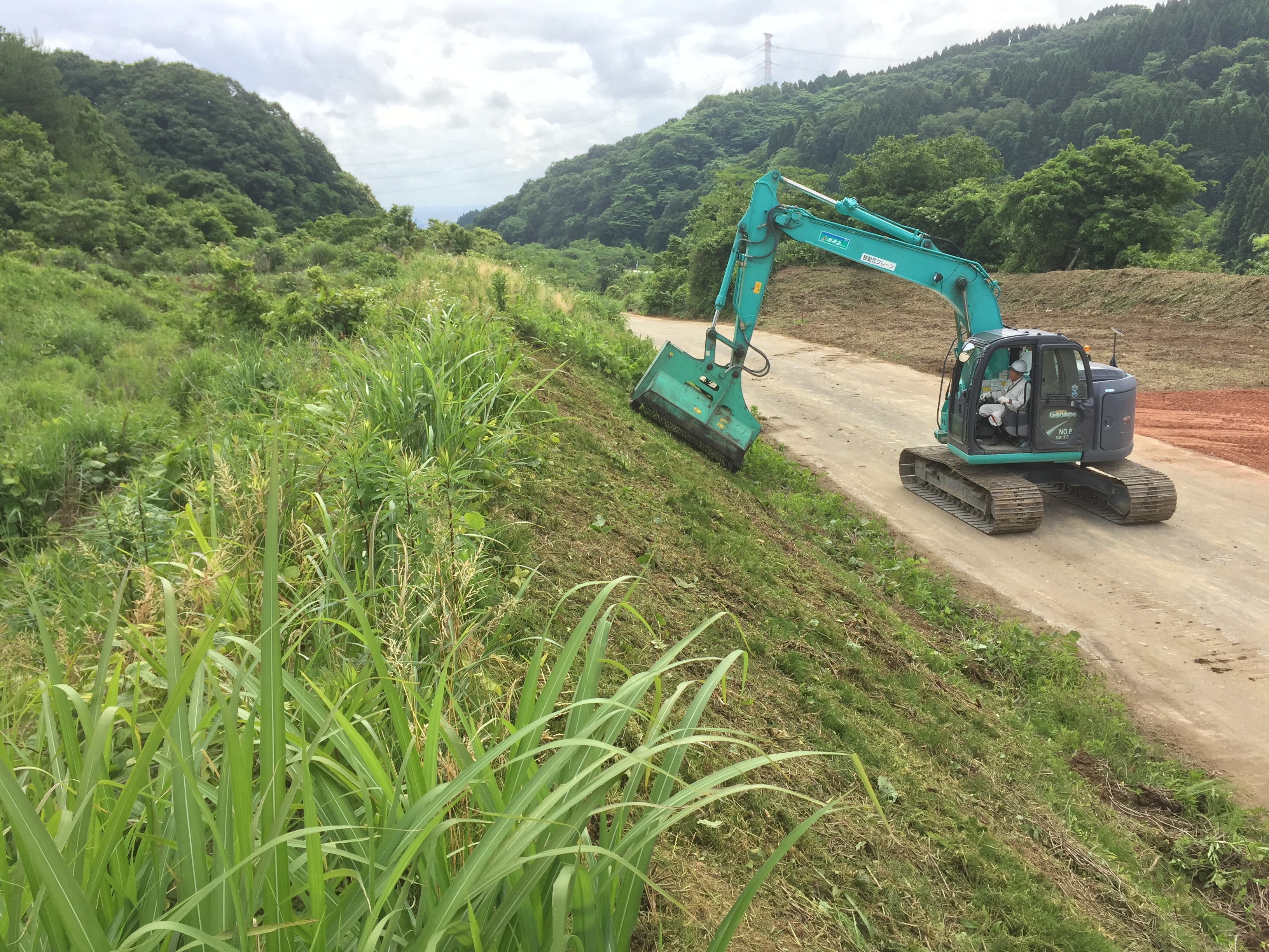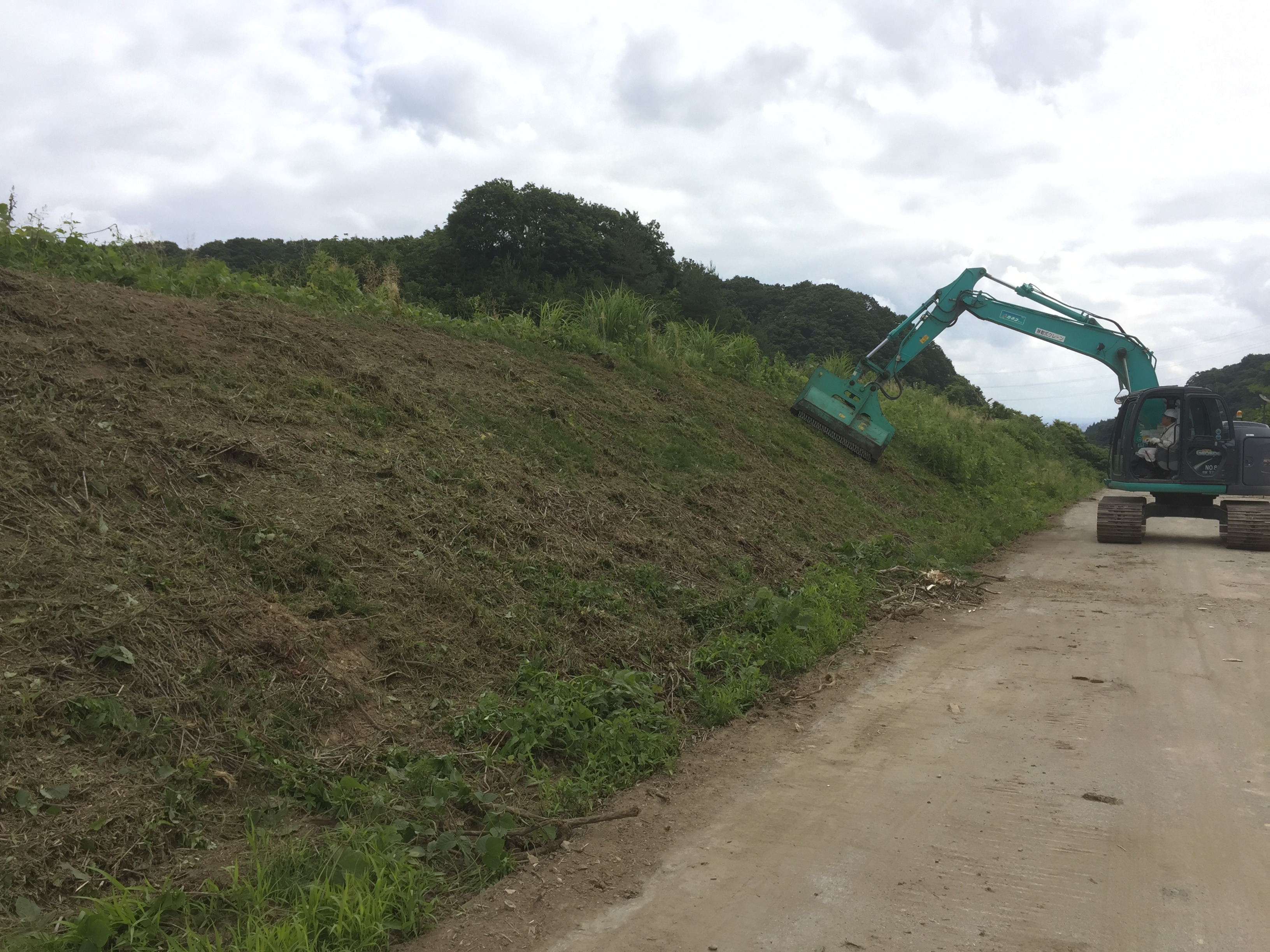 数100mある法面をクサカルゴンで草刈り伐採を行いました。