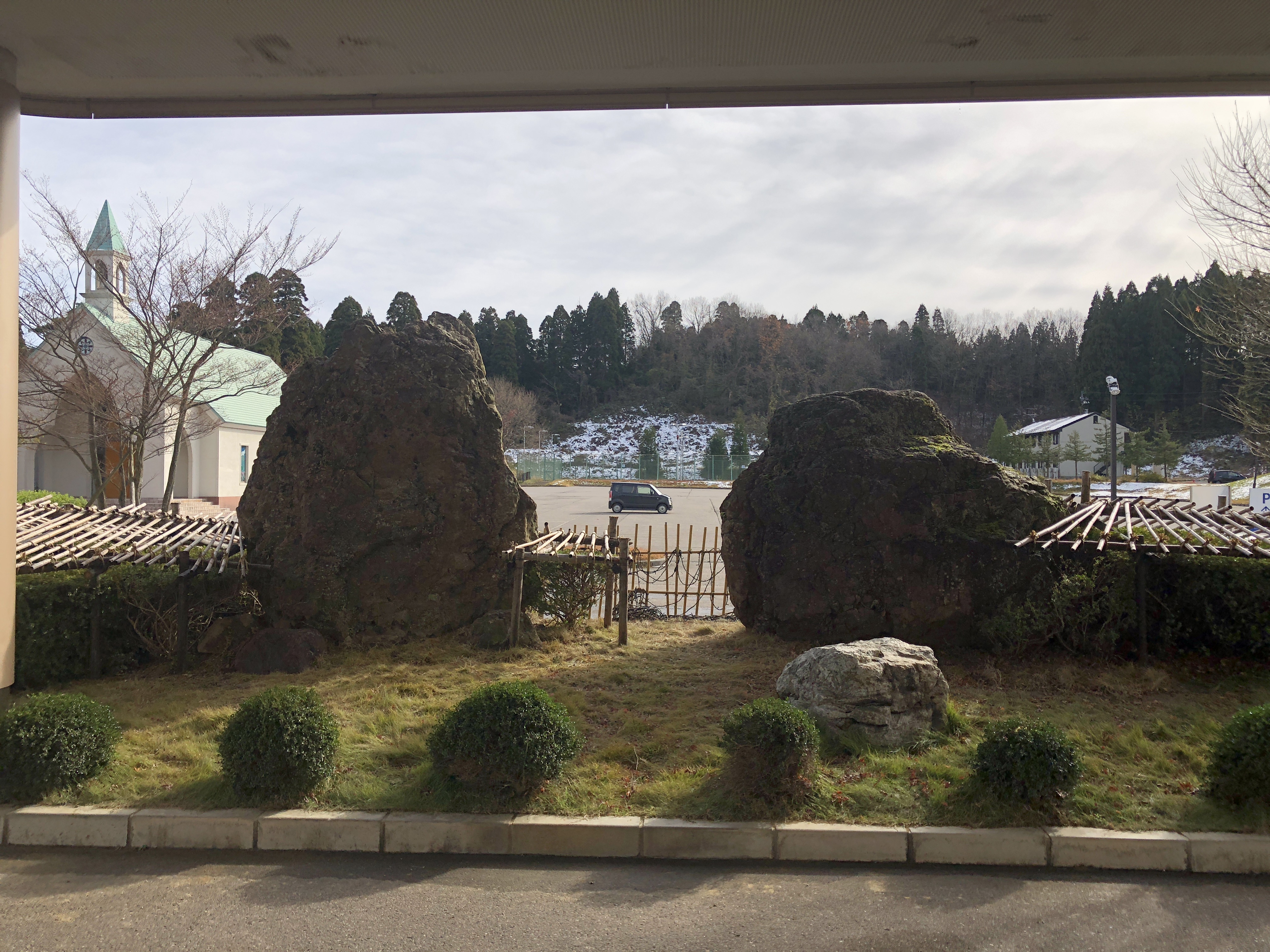 小矢部石と呼ばれる地元の大きな石を二つ設置させていただきました。