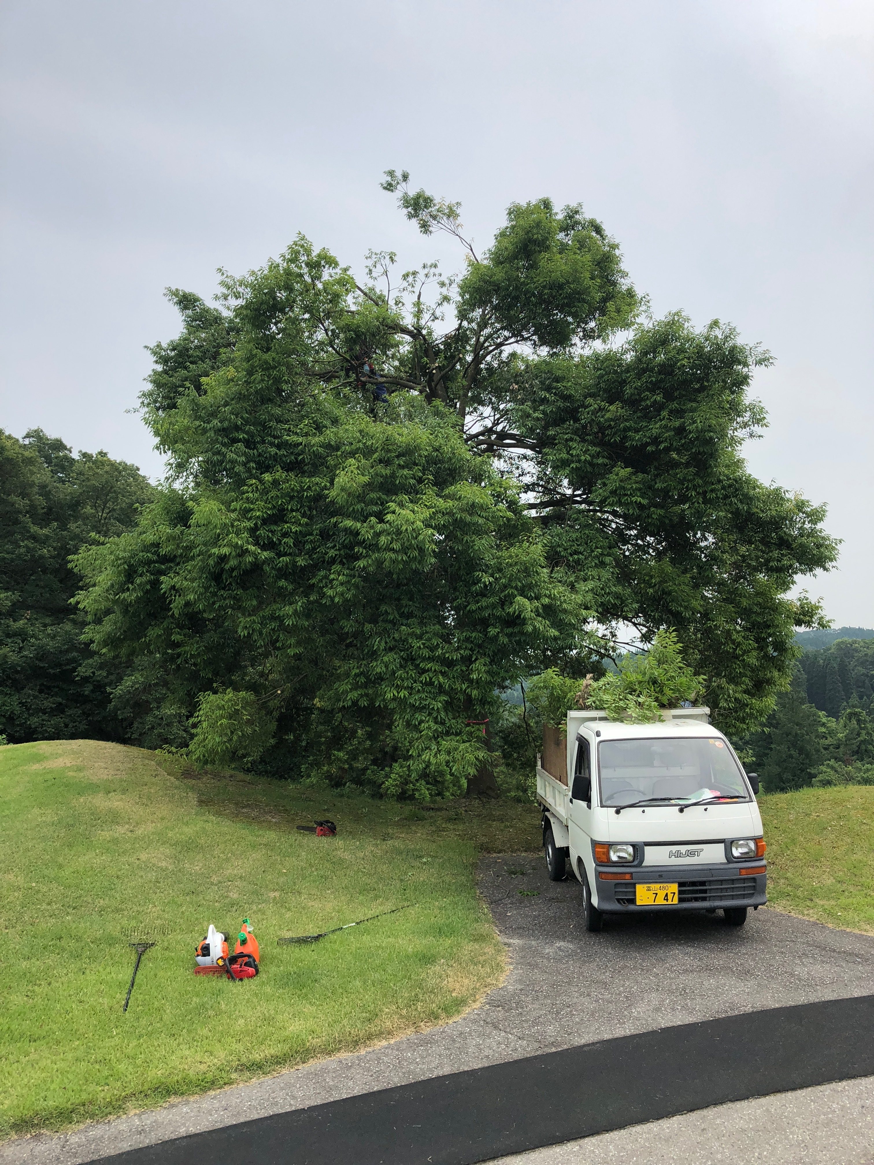ゴルフ場のコース内樹木剪定伐採、街路樹剪定、草刈りなどを行いました。