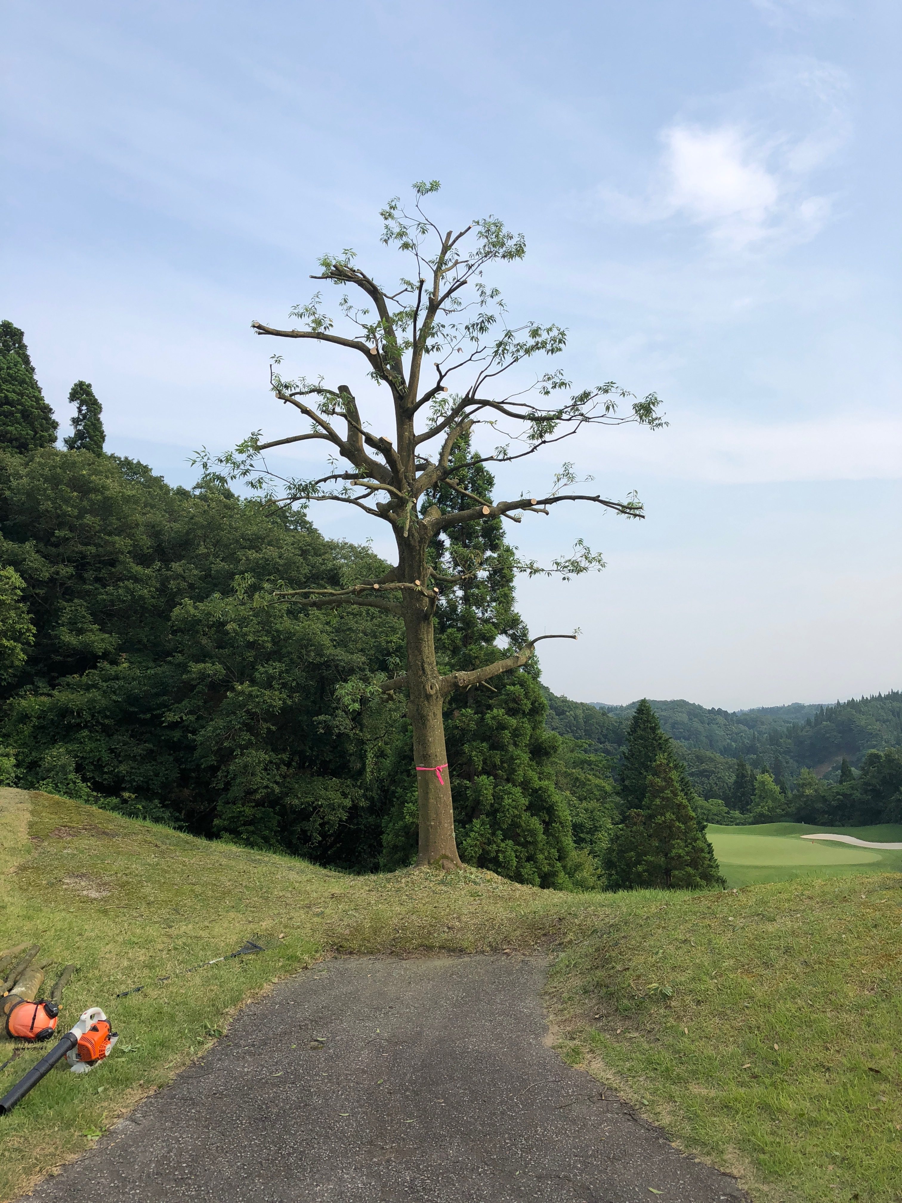 コース内の樹木はプレイに支障がある枝葉を落としたり、枯れた木を伐採。