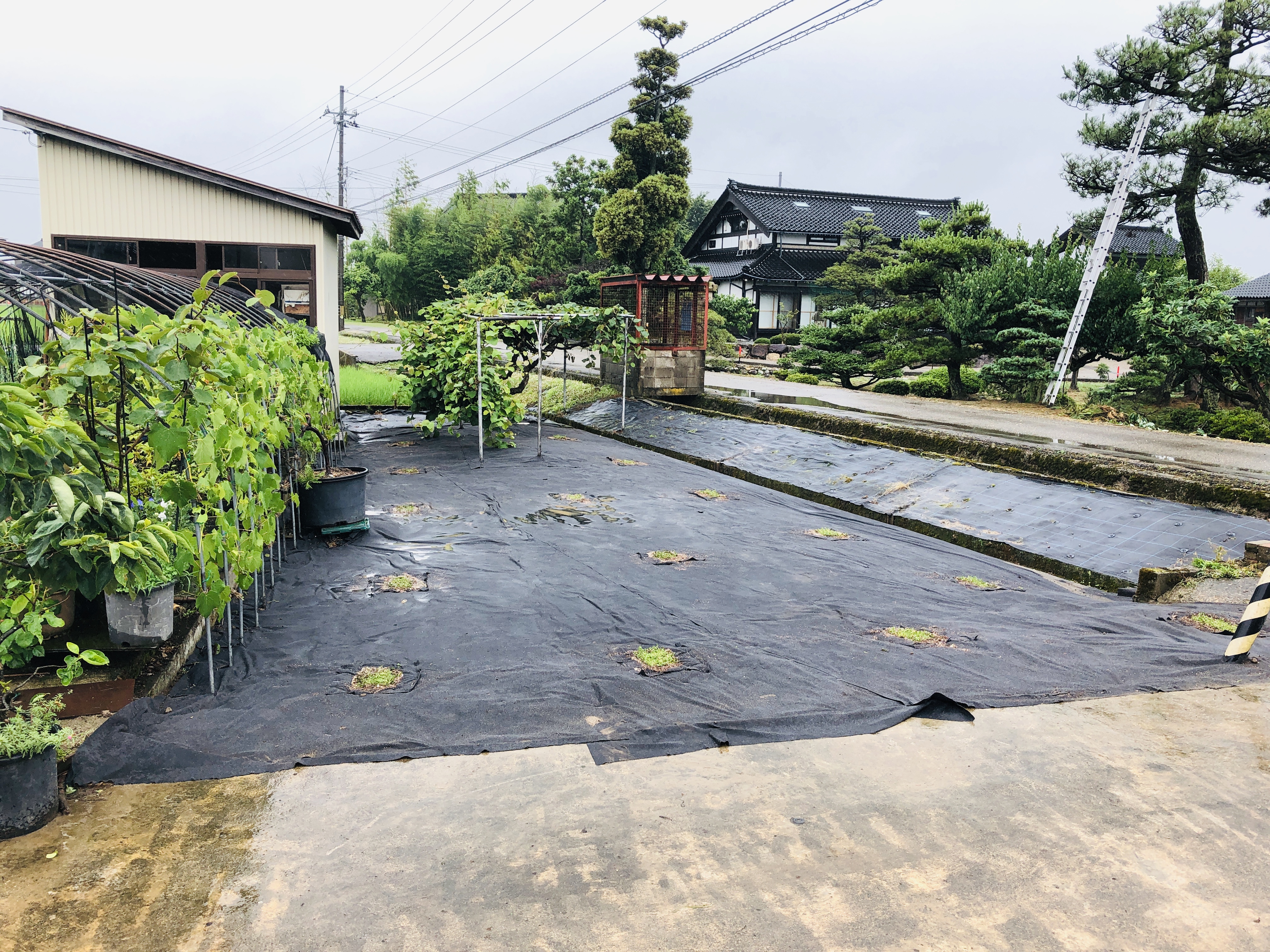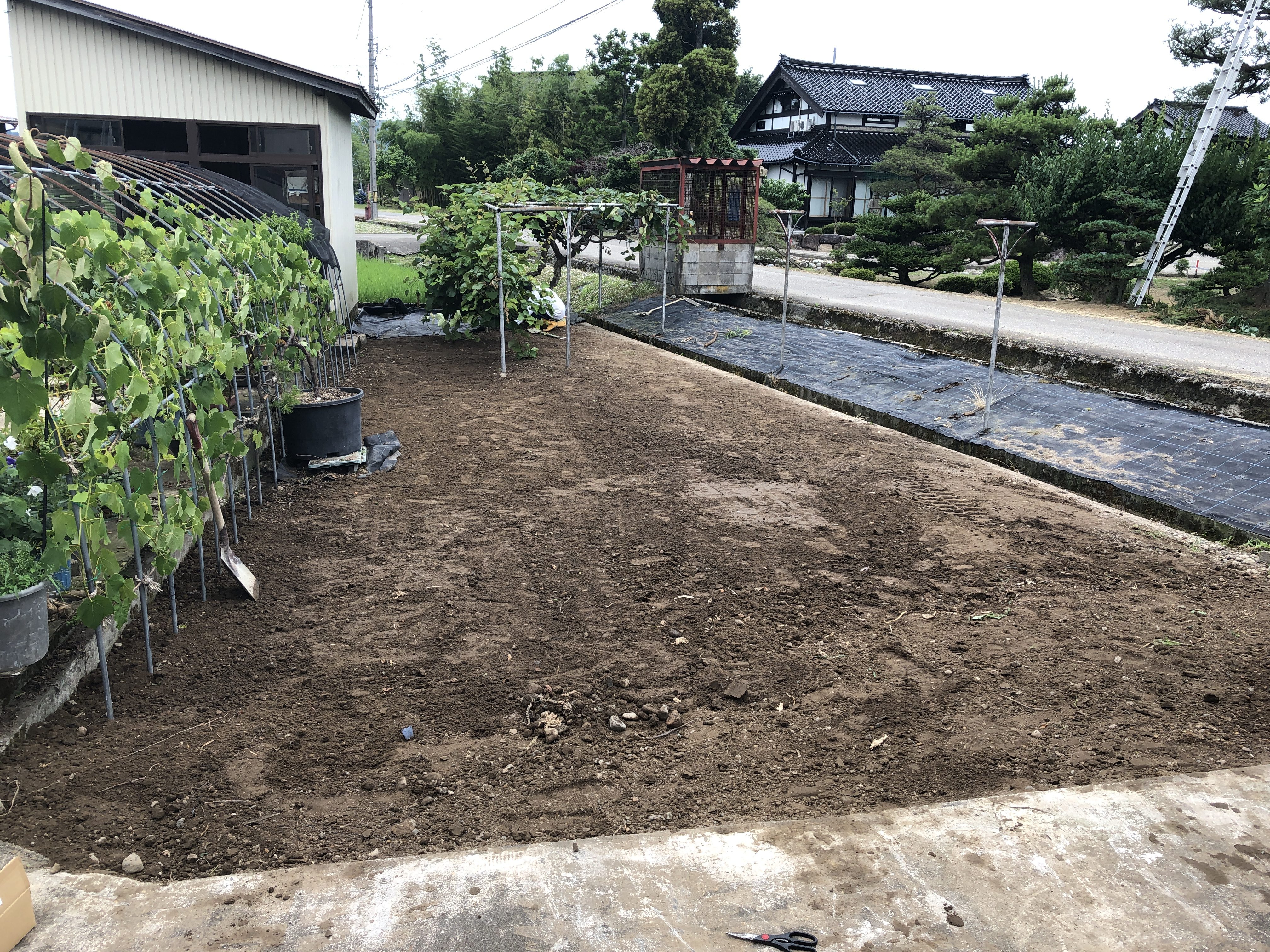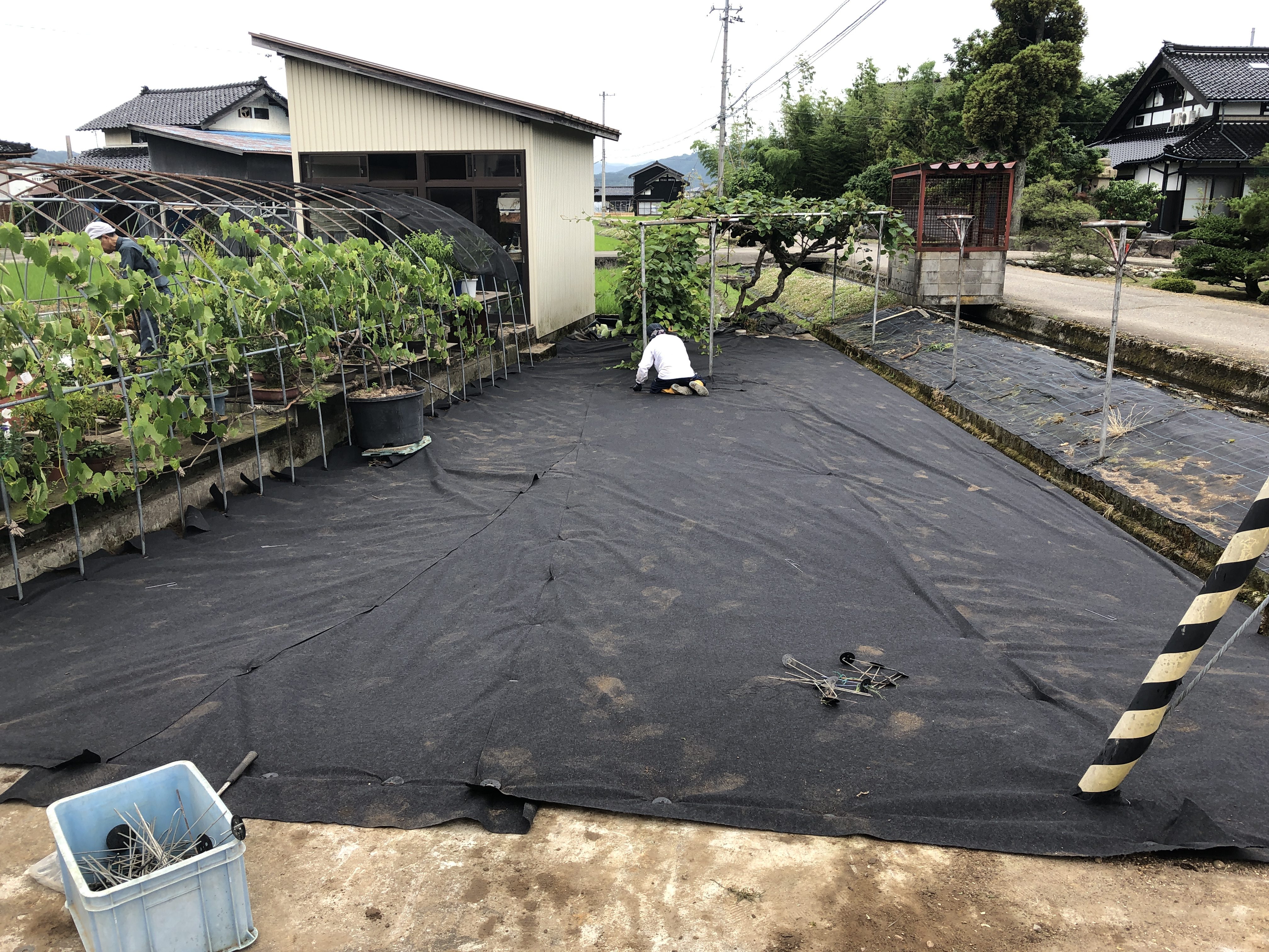 果樹畑を一部撤去し、これまで防草シートを敷いていた箇所に